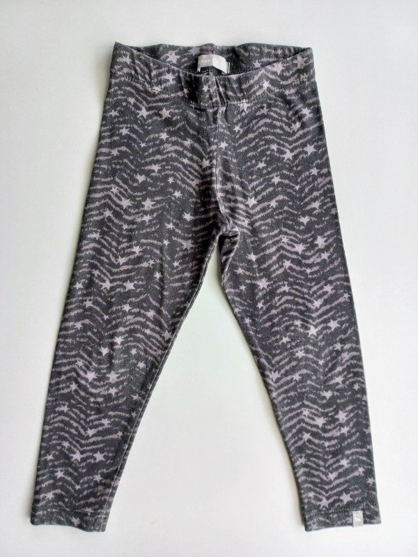 Calza de algodón en color gris con estampa estrellas. Medidas: cintura 20 cm, largo 49 cm. COMO NUEVO
