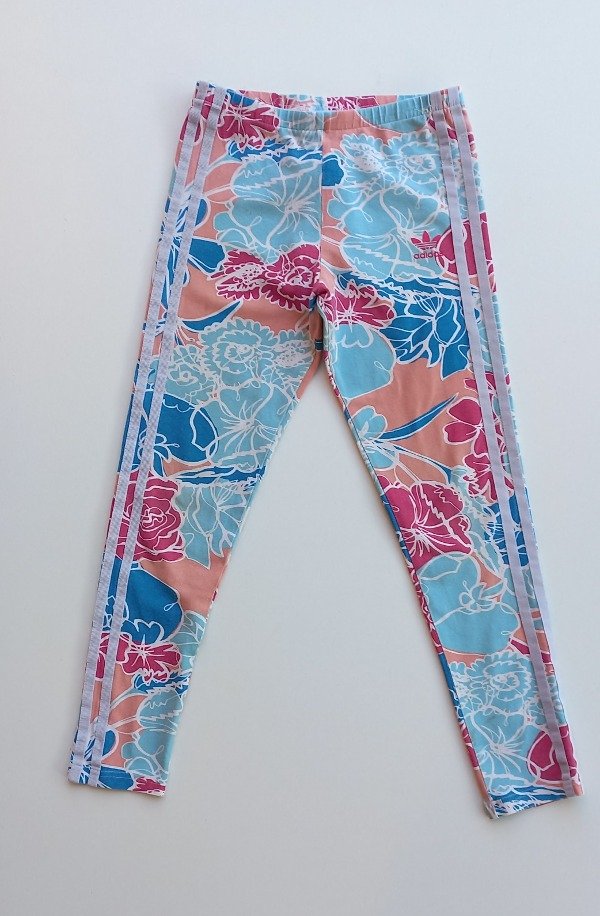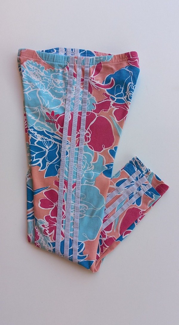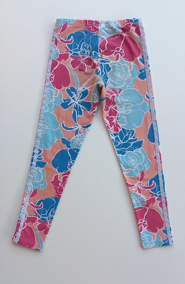 Calza de algodón estampada con las tres tiras a ambos lados en color gris. Talle 9-10 años. Medidas: cintura 27,5 cm, largo 72,5 cm. USADO, buen estaso