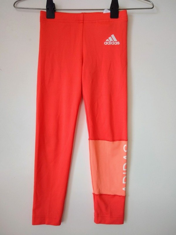 Calza de lycra en color anaranjada combinada. Medidas: cintura 24,5 cm, largo 62 cm. COMO NUEVO
