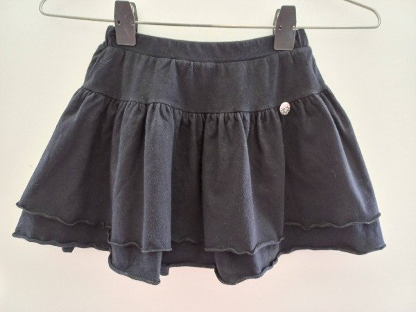 Pollera de algodón color negro. Tiene doble falda y short debajo. Talle 5-6 años. Medidas: cintura 23 cm, largo 28 cm. USADO, buen estado