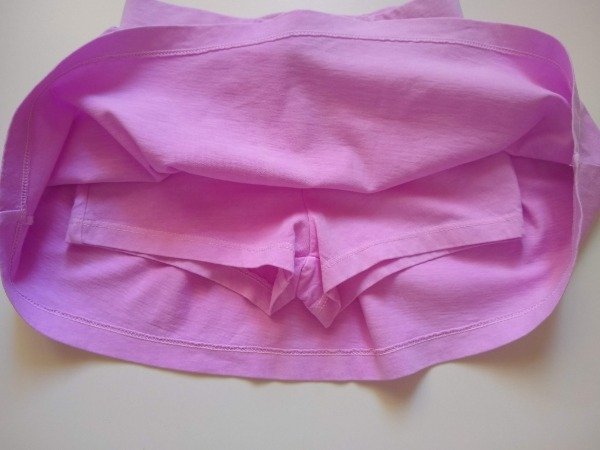 Pollera de algodón con short debajo de la falda. Tiene lazo dorado en la cintura. Medidas: cintura 25 cm, largo 24 cm. NUEVA SIN ETIQUETA