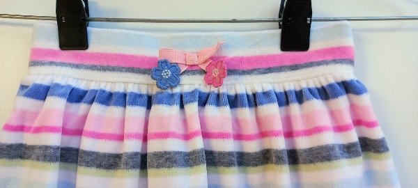 Pollera de towel rayado con short de algodón debajo de la falda. Medidas: cintura 26 cm, largo 28,5 cm. COMO NUEVO
