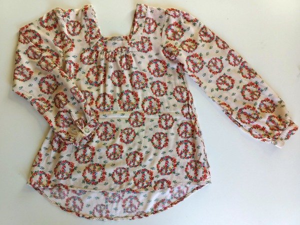 Blusa manga larga de fibrana estampada. Medidas: ancho de hombro 34 cm, largo de manga 53 cm, largo total 59 cm. COMO NUEVO