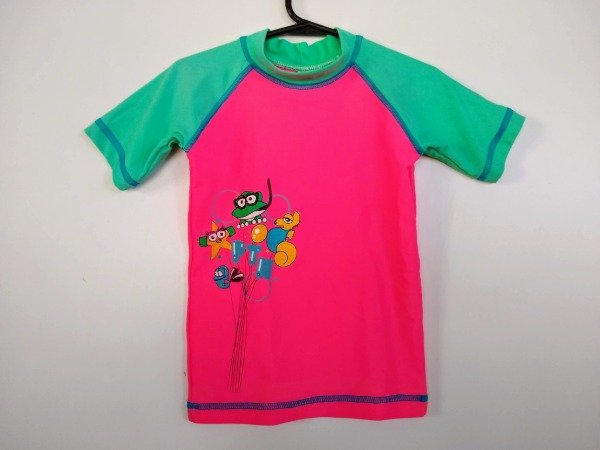 Remera manga corta de lycra con protección UV. Medidas: ancho de hombro 27 cm, largo 40 cm. COMO NUEVO