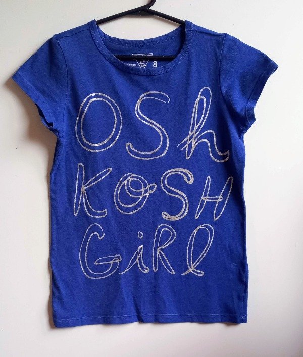 Remera manga corta de algodón en color azul eléctrico con letras con brillo. Medidas: ancho de hombro 29 cm, largo 53 cm. COMO NUEVO