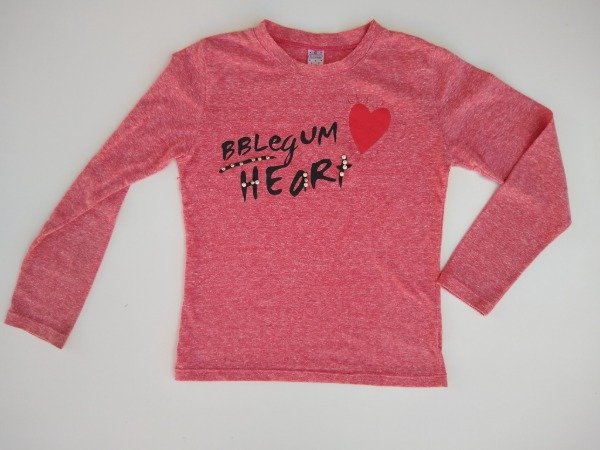 Remera manga larga de algodón color rojo melange con estampa con perlas al frente. Medidas: ancho de hombro 33 cm, largo de manga 50 cm, largo total 50 cm. COMO NUEVO