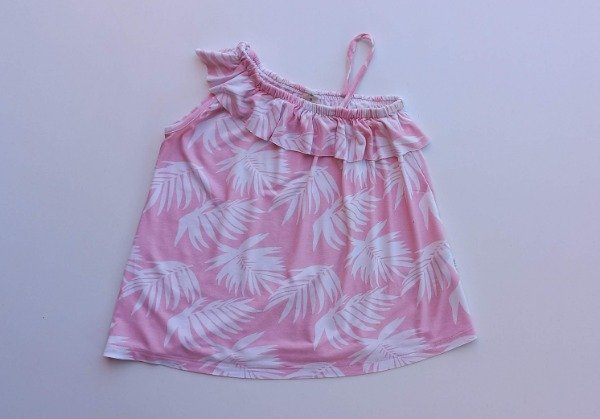 Remera sin mangas con volado irregular alrededor del cuello. Medidas: ancho de sisa a sisa 31 cm, largo 42 cm. COMO NUEVO