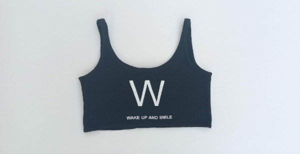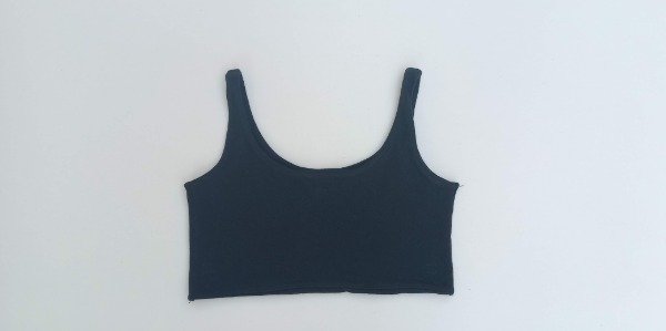 Top de algodón con lycra en color negro. Doble tela. Medidas: ancho de sisa a sisa 29 cm, largo 23 cm. USADO, buen estado