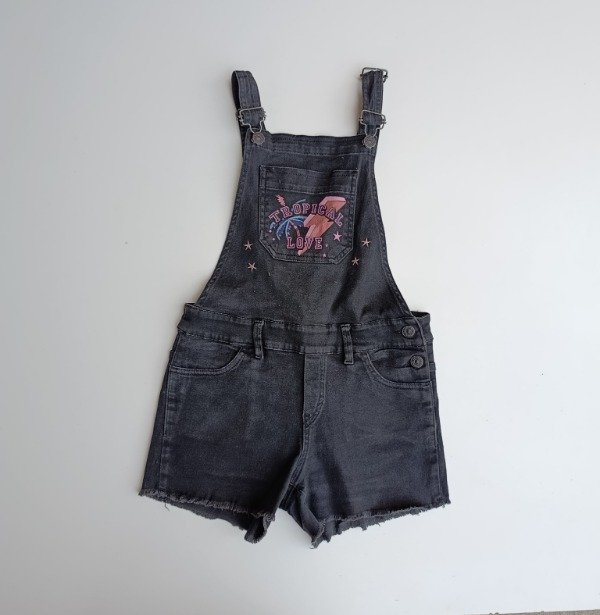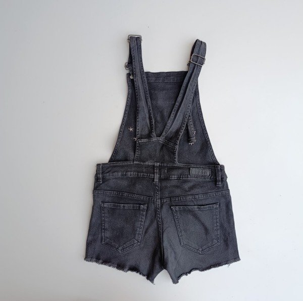 Jardinero de gabardina en color negro. Medidas: cintura 34,5 cm, largo desde la pechera 52 cm. Tiras regulables. USADO, buen estado