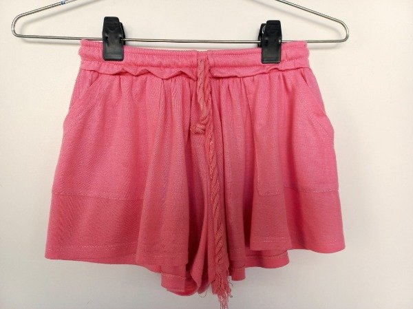 Short de algodón color coral. Tiene cordón y elástico en la cintura, bolsillos al frente. Medidas: cintura 26,5 cm, largo 24 cm. USADO