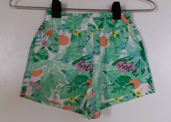 Short de algodón estampado con bolsillos al frente. Medidas: cintura 24 cm, largo 25 cm. COMO NUEVO