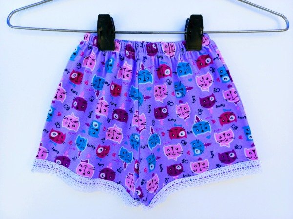 Short de modal estampado con terminación en puntilla de algodón. Medidas: cintura 18 cm, largo 22 cm. USADO, buen estado