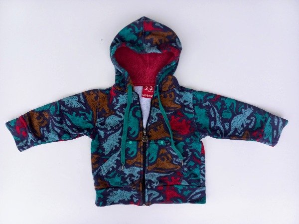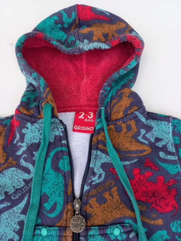Campera de algodón con friza estampado. Tiene capucha y bolsillos canguro. Talle 2-3 años. Medidas: ancho de hombro 30 cm, largo de manga 29 cm, largo total 37 cm. COMO NUEVO