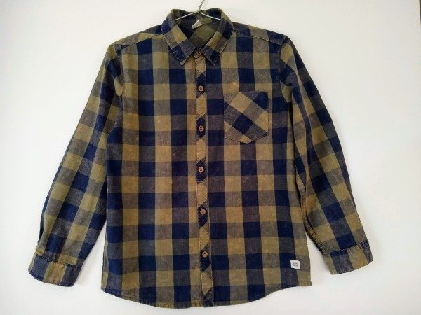 Camisa manga larga a cuadros azul y verde. Medidas: ancho de hombro 37 cm, largo de manga 51,5 cm, largo total 58 cm. USADO, muy buen estado