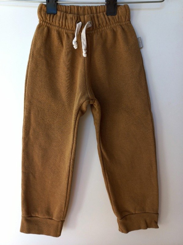 Pantalón jogging de algodón con friza en color marrón. Medidas: cintura 21 cm, largo 56 cm. USADO, buen estado