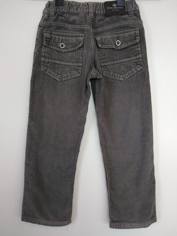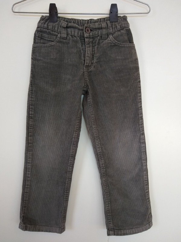 Pantalón de corderoy color gris, con elástico en la cintura para regular el calce. Medidas: cintura 29 cm, largo 68 cm. USADO