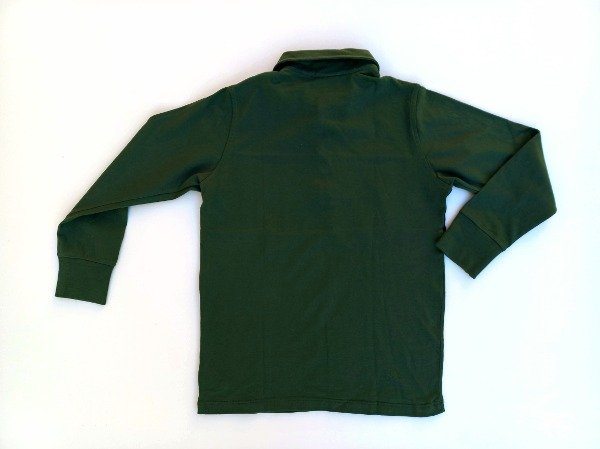 Chomba manga larga de algodón color verde . Talle 5-6 años. Medidas: ancho de hombro 31 cm, largo de manga 46,5 cm, largo total 53,5 cm. USADO, excelente estado