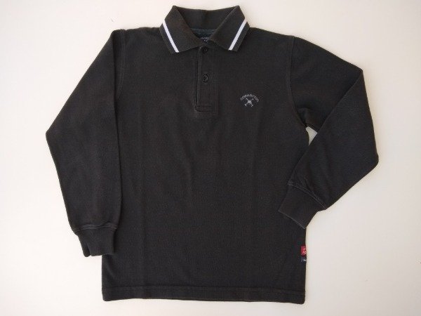 Chomba manga larga de piqué color negro. Medidas: ancho de hombro 34 cm, largo de manga 46 cm, largo total 54 cm. USADO, buen estado