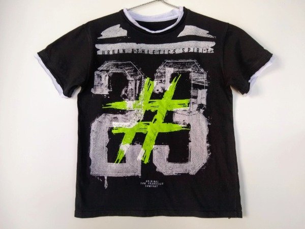 Remera manga corta color negro con estampa fluor. Medidas: ancho de hombro 39 cm, largo 55 cm. COMO NUEVO