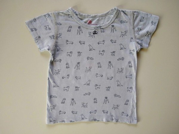 Remera manga corta de algodón con estampa perritos. Medidas: ancho de hombro 30 cm, largo 42 cm. USADO