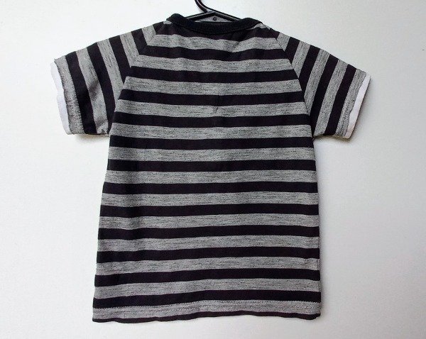Remera manga corta de algodón rayada gris. Medidas: ancho de sisa a sisa 26 cm, largo 35 cm. USADO, buen estado