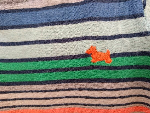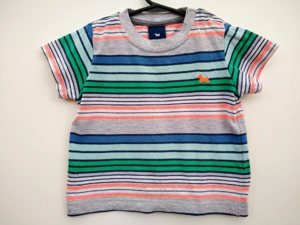 Remera manga corta de algodón rayada. Medidas: ancho de hombro 24 cm, largo 35 cm. USADO